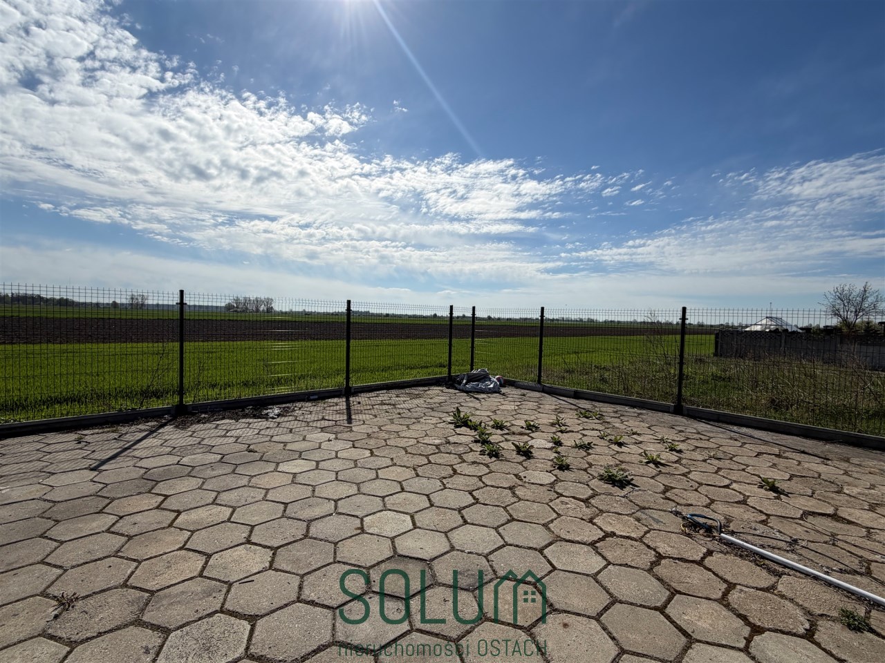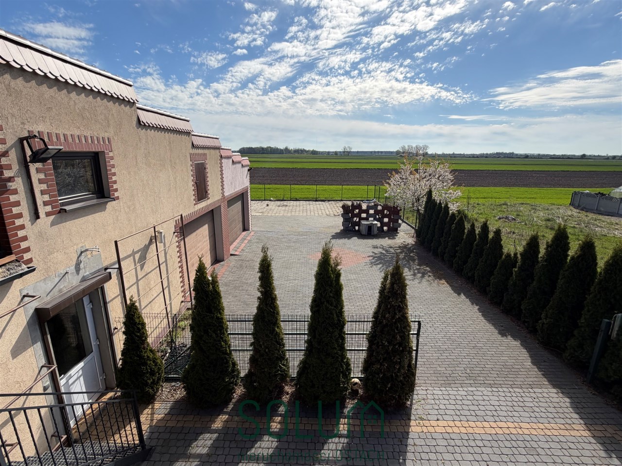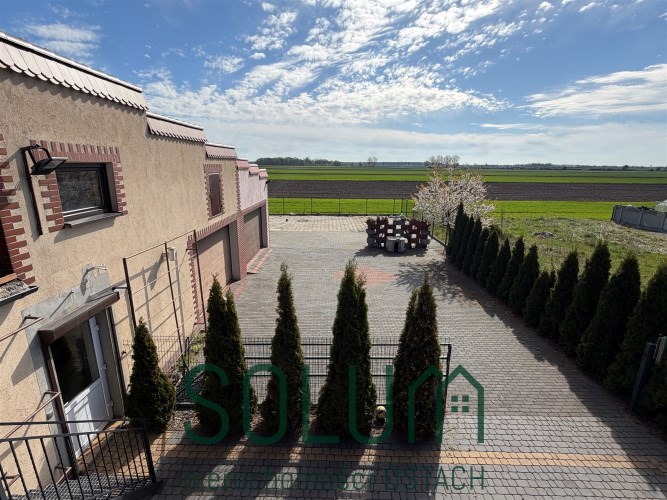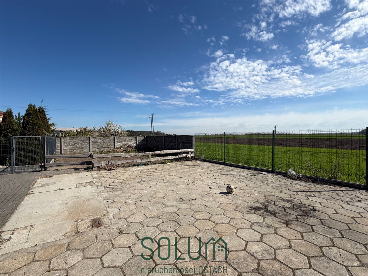 W innej części działki znajduje się duży plac wyłożony kostką oraz trylinką. Idealnie nadający się do parkowania pojazdów lub maszyn, magazynowania lub postawienia paneli fotowoltaicznych (gotowe przyłącze).