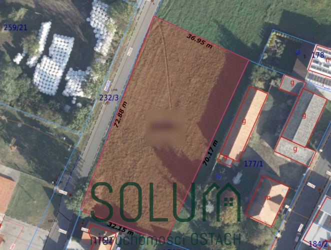 Nieruchomość idealnie nadaje się pod inwestycję. Można z niej uzyskać 3 działki o powierzchni ok. 1000 m i przybliżonych wymiarach 23 m (fronty) x 32 - 36 m (boki).