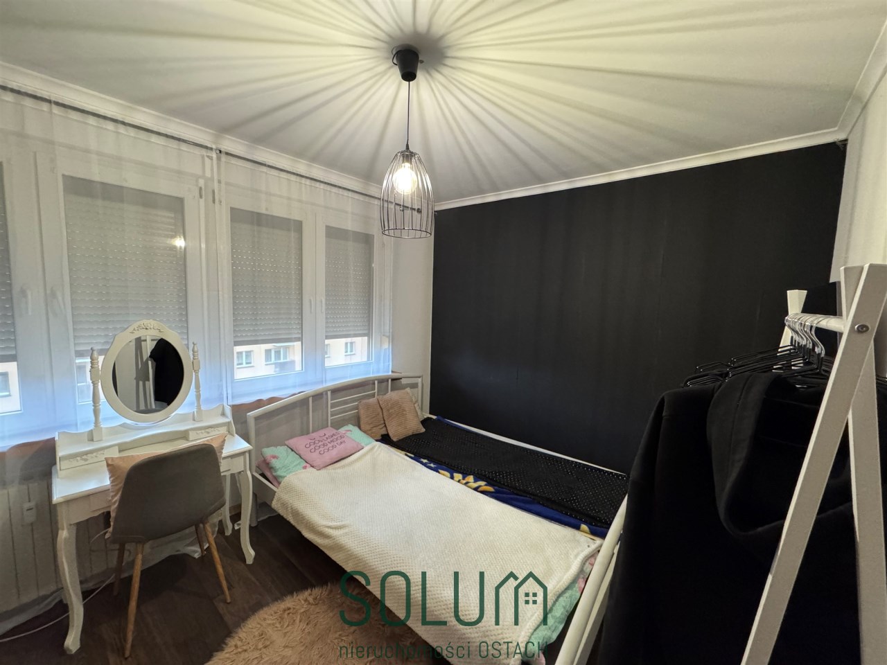 Mieszkanie wyposażone jest w zabudowę kuchenną wraz ze sprzętem AGD (kuchenka gazowa z piekarnikiem, lodówka, okap). Dużą szafę typu Komandor w przedpokoju. Szafki, stoły, biurka i łóżka w pokojach.