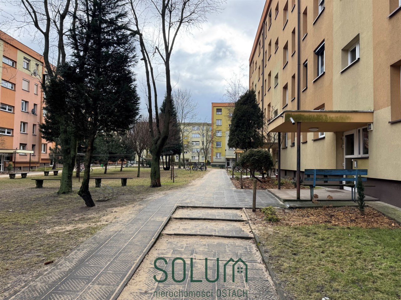 Mieszkanie usytuowane jest na drugim piętrze czteropiętrowego bloku po termomodernizacji.