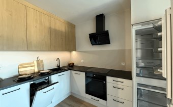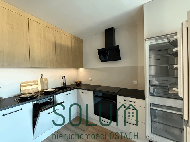 W cenie pozostaje zabudowa kuchenna wykonana przez stolarza w modnym połączeniu kaszmiru i ciepłego drewna, wraz ze sprzętem AGD firmy Samsung (płyta indukcyjna, piekarnik, zmywarka, duża lodówka oraz okap), duża podświetlana, przeszklona szafa, w przedpokoju pojemna szafa.
