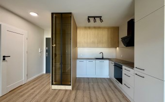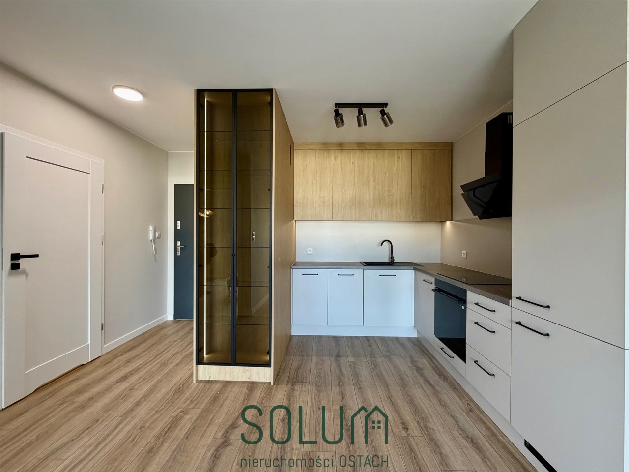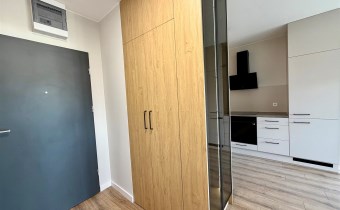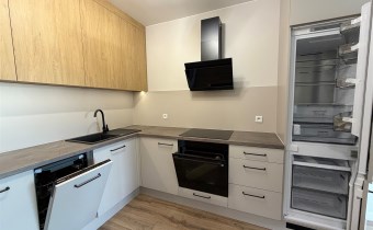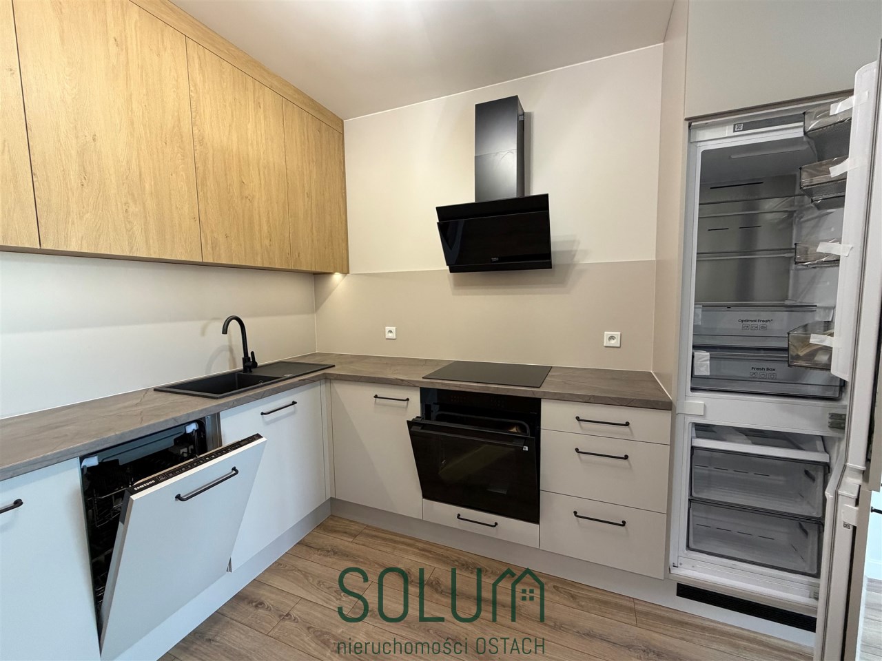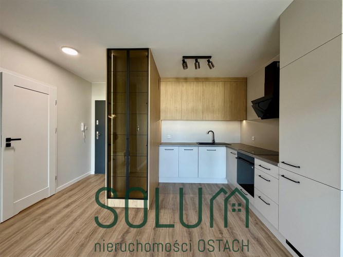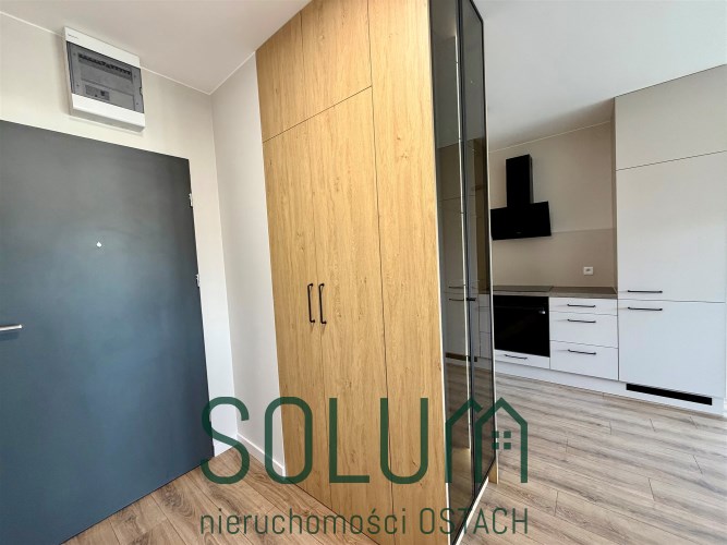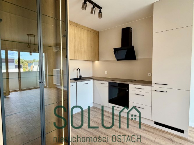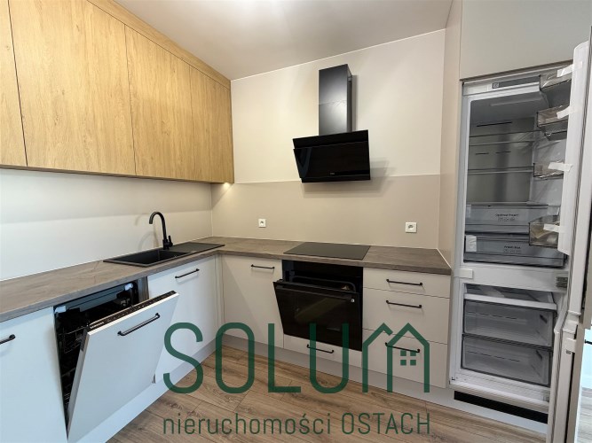 W cenie pozostaje zabudowa kuchenna wykonana przez stolarza w modnym połączeniu kaszmiru i ciepłego drewna, wraz ze sprzętem AGD firmy Samsung (płyta indukcyjna, piekarnik, zmywarka, duża lodówka oraz okap), duża podświetlana, przeszklona szafa, w przedpokoju pojemna szafa.