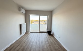 Przestronny salon z aneksem kuchennym i wyjściem na duży balkon,