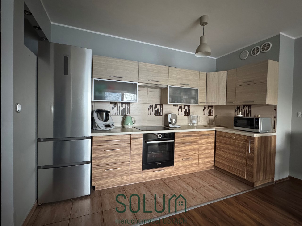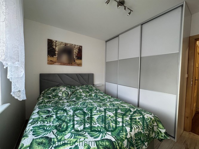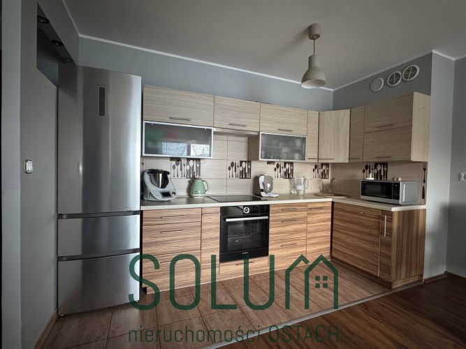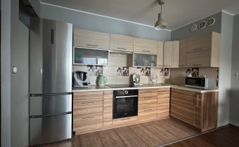 Mieszkanie wyposażone jest w zabudowę kuchenną wraz ze sprzętem AGD (płyta indukcyjna, piekarnik, lodówka wolnostojąca, kuchenka mikrofalowa, okap). trzy duże szafy typu Komandor w sypialniach oraz przedpokoju (bardzo głęboka)..