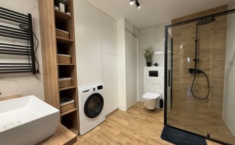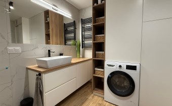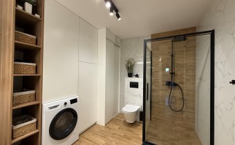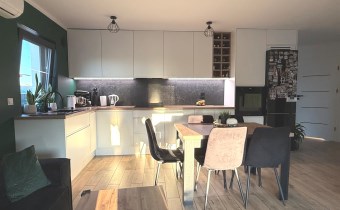 - klimatyzacja z funkcją grzania; - w cenie pozostaje: meble kuchenne w zabudowie + sprzęt AGD (płyta indukcyjna, piekarnik, lodówka, zmywarka), szafy w zabudowie w łazience, szafy w zabudowie w pokojach;