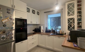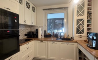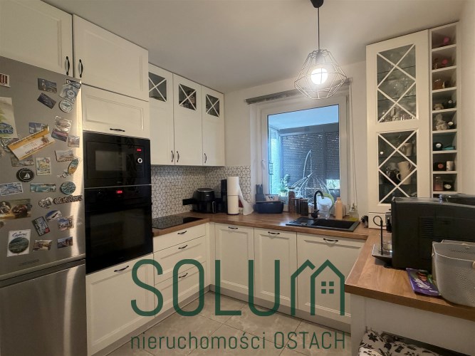Mieszkanie jest częściowo umeblowane i gotowe do zamieszkania. Kuchnia wyposażona w zabudowę oraz sprzęt AGD: lodówkę z zamrażalką, płytę ceramiczną, piekarnik, mikrofalę oraz zmywarkę.