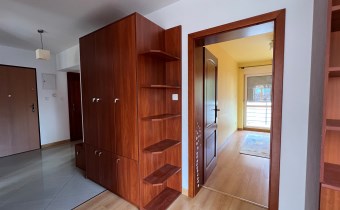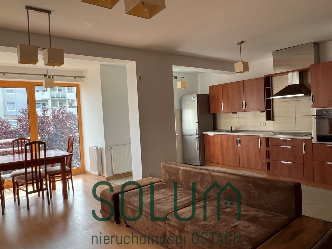 Mieszkanie częściowo umeblowane, posiada zabudowę kuchenną wraz ze sprzętem AGD (lodówka z zamrażalką, płyta ceramiczna, piekarnik, zmywarka), w pokojach meble, kanapy, łóżka, w przedpokoju duża szafa w zabudowie.